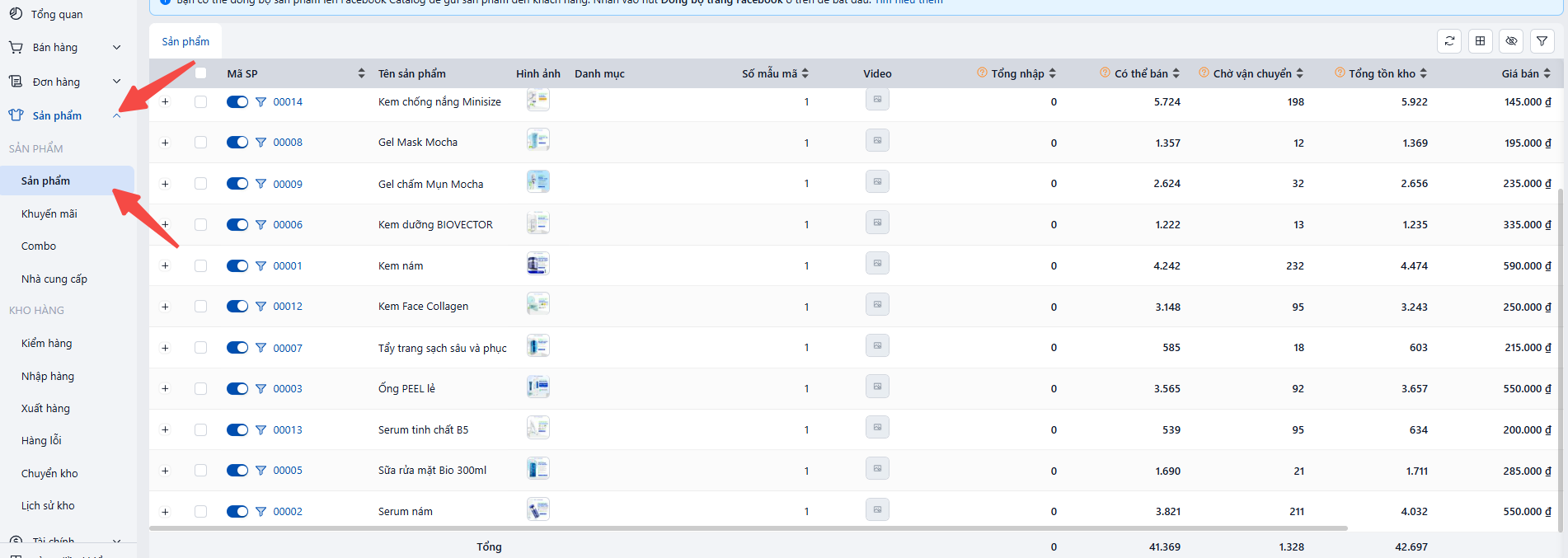 · Chọn Sản phẩm (menu bên trái)