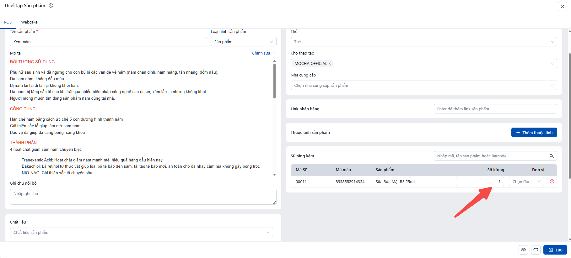 Bước 4: Nhập Số Lượng Tặng Kèm