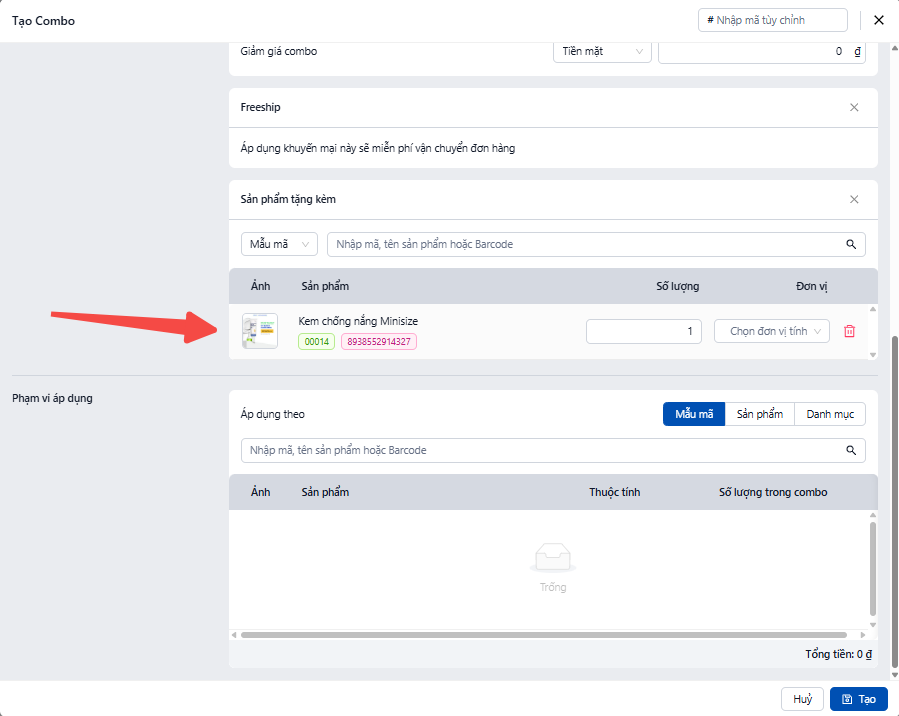 Bước 12: Thêm Sản Phẩm Trong Combo